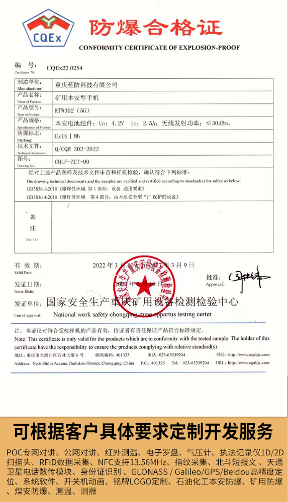 手機類型: 礦用本安型手機